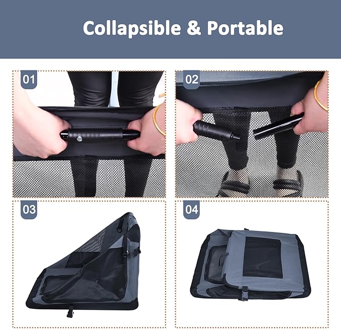 - Collapsible Dog Kennel: Three mesh entrances door (Top, front and side) for convenience sunlight and breathability; Ample Ventilation for Use in All Season. Easy carry with handle or strap. Adjustable strap included.