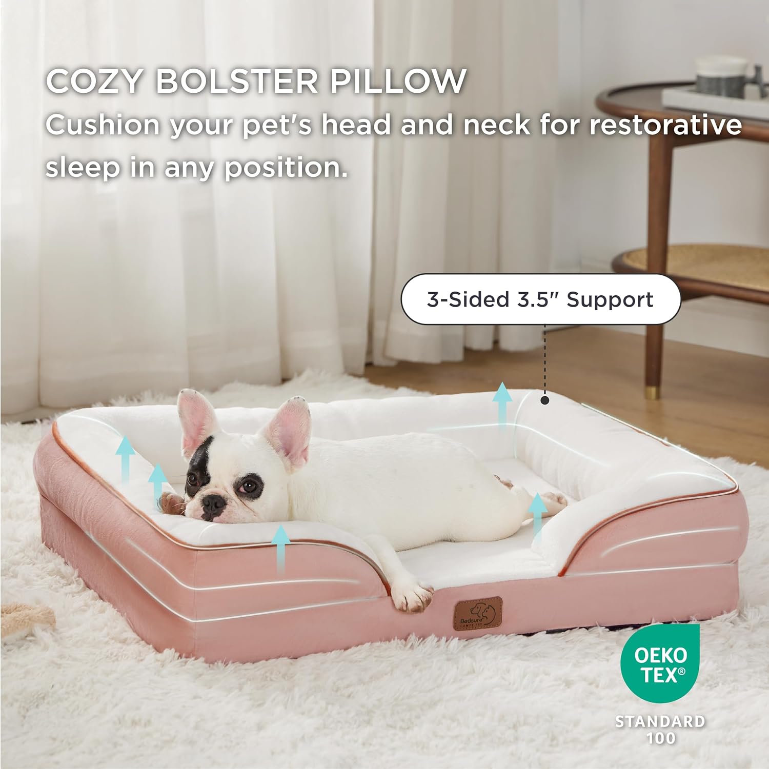- Enhanced Comfort: The 4-sided bolster design promotes ultimate comfort and security, offering your pet a variety of cozy positions to snuggle. The cushioned bolster shape is deeply filled to support your pet’s head and neck for a more restful sleep. And the lowered entrance protects your pet's knees and promotes accessibility.