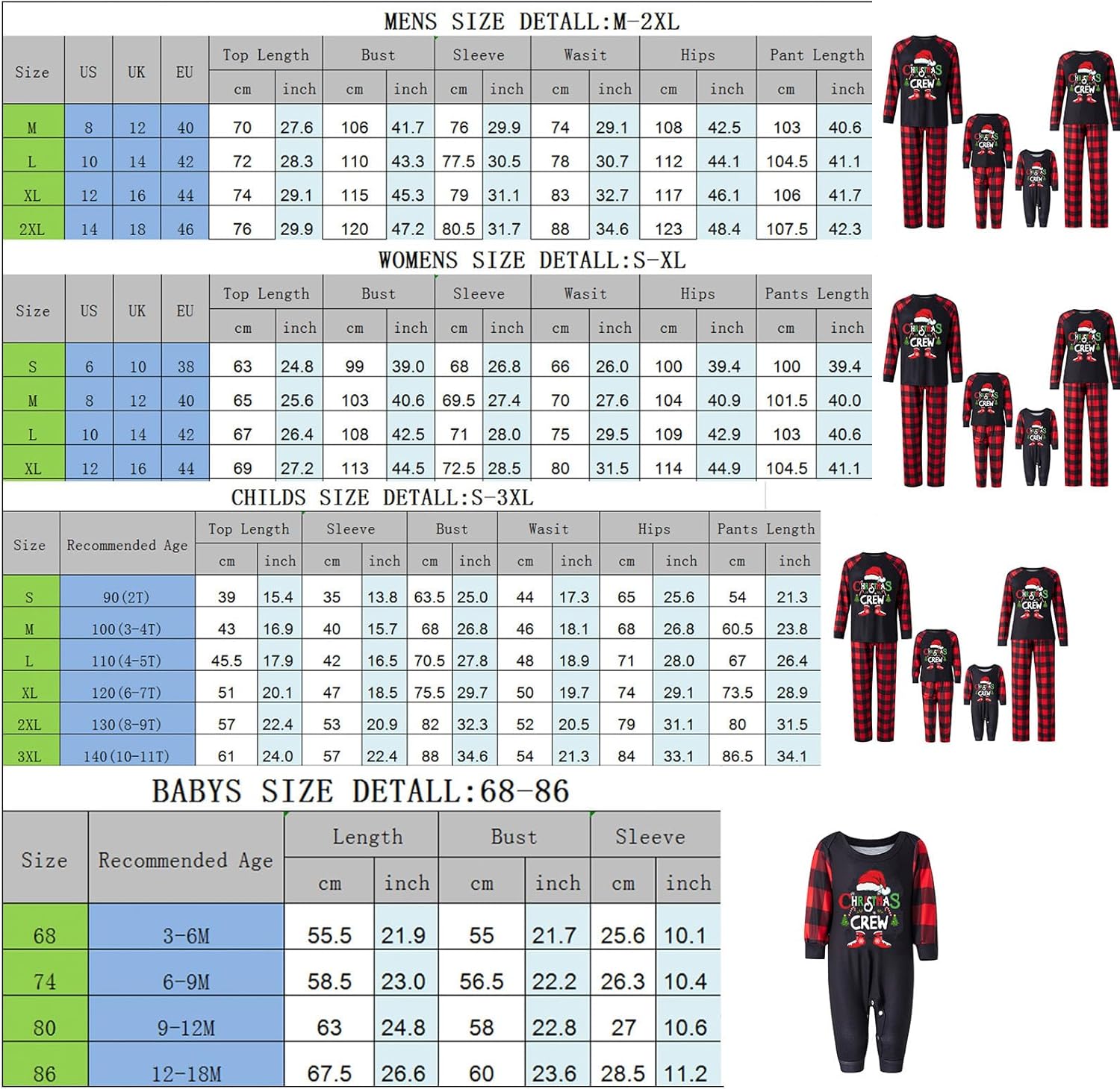 - [Sizes for Everyone] - Our Family Matching Christmas Pajamas Christmas pajama sets span a variety of sizes to fit everyone - women, men, boys, girls, pets, adults, children, toddlers, and even babies