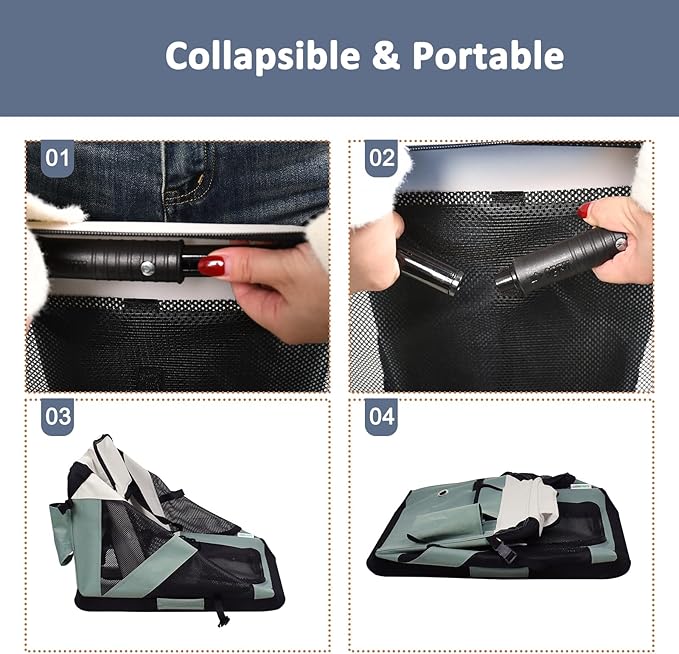 - Collapsible Dog Kennel: Three mesh entrances door (Top, front and side) for convenience sunlight and breathability; Ample Ventilation for Use in All Season. Easy carry with handle or strap. Adjustable strap included.