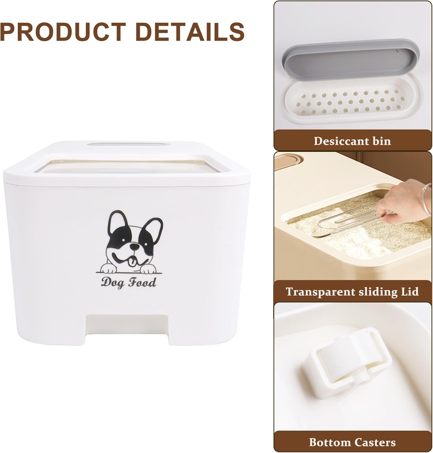 - 【Push-pull sliding lid】: The transparent sliding lid on the top allows you to see the inside of the pet food container, and the transparent sliding cover saves effort, you only need to operate with one hand to push or pull the lid when scoop out or fill in pet food.